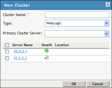 Primary Cluster Server: Select a primary server from the list of servers displayed.