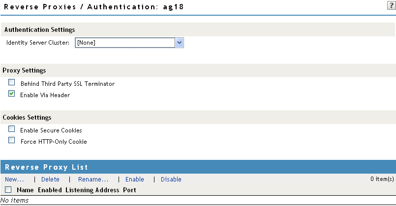 To create a reverse proxy, you must create at least one proxy service with a protected resource. You must supply a name for each of these components. Reverse proxy names and proxy service names must be unique to the Access Gateway because they are configured for global services such as IP addresses and TCP ports. For example, if you have a reverse proxy named products and another reverse proxy named library, only one of these reverse proxies can have a proxy service named corporate.