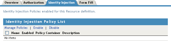 For an example of how Identity Injection policies can be used for single sign-on to the Identity Manager User Application, see “Configuring Access Manager for UserApp and SAML”.