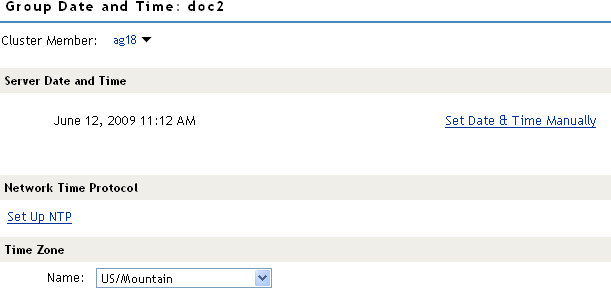 For the Identity Server or a Linux Access Gateway Service, use YaST to verify the time settings. For a Windows Access Gateway Service, use the Date and Time option in the Control Panel. If you have a Network Time Protocol server, configure the Access Manager machines to use it.