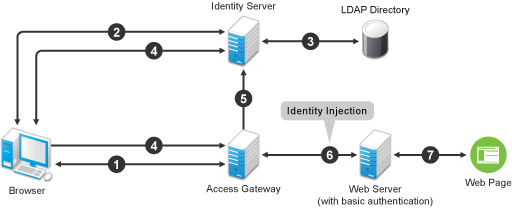 The Access Gateway injects the basic authentication information into the HTTP header.