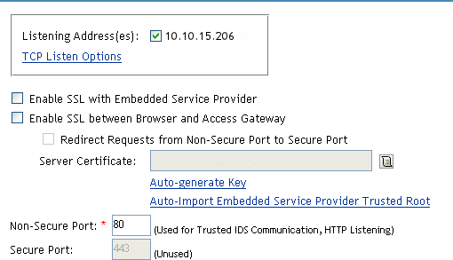 Secure Port: This is the HTTPS listening port. This port is unused and cannot be configured until you enable SSL. This configuration scenario does not contain SSL configuration instructions.