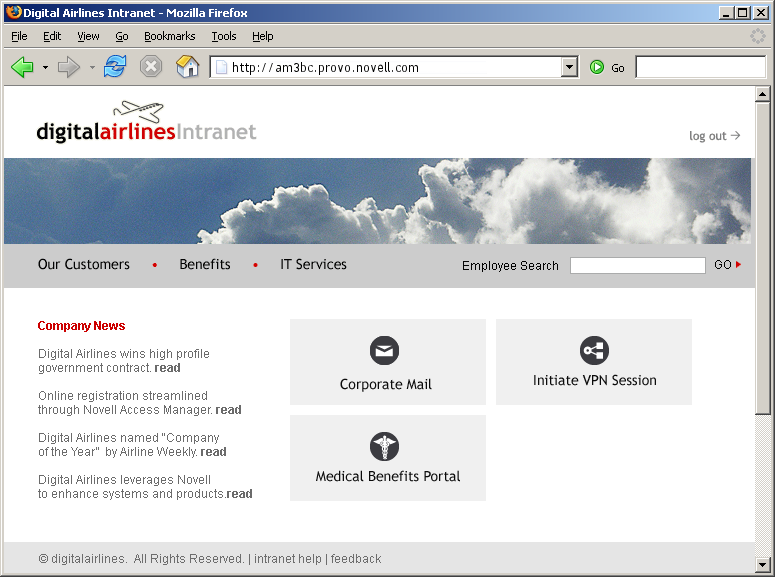 This section describes the procedures for configuring the Access Gateway so that a client can access the Digital Airlines site. Before continuing, make sure you have completed the prerequisite tasks described in Prerequisite Tasks and Section 6.2, Setting Up the Web Server.