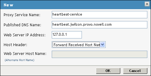 Published DNS Name: Specify a second DNS name that resolves to the VIP of the Access Gateways on the L4 switch. For example, if the DNS name is jwilson.provo.novell.com for the Access Gateways, you could use heartbeat.jwilson.provo.novell.com for the second name.