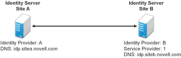 Federation requires the configuration of a trusted relationship between an identity provider and a service provider. Figure 5-2 illustrates setting up federation between two Identity Servers, because a Novell Identity Server can act as either an identity provider or a service provider.