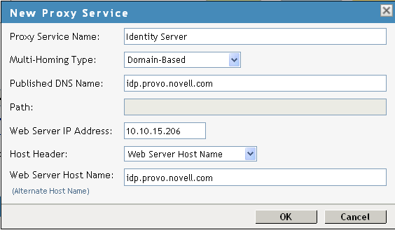 For example, if the proxy service name is jwilson1.provo.novell.com, replace jwilson1with idp so that the name is idp.provo.novell.com.