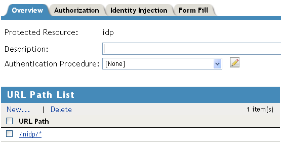 Verify that the has an entry with /nidp as the path for the protected resource.