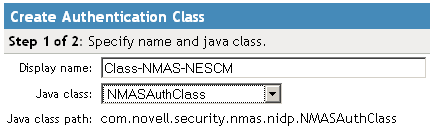 From the selection list, select the class created in Creating an NMAS Class for NESCM.