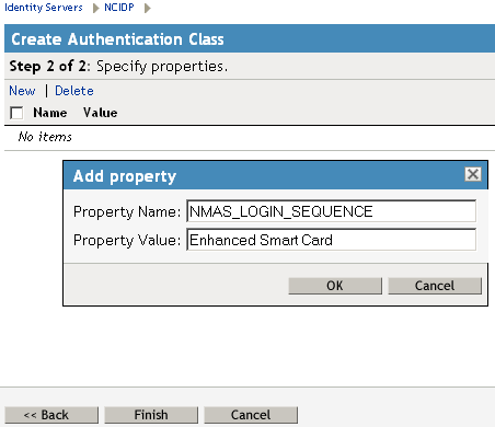 When you create a class, you can specify values for properties. In the following steps, you specify a property value that determines the sequence of login prompts that the user receives when authenticating with a smart card.