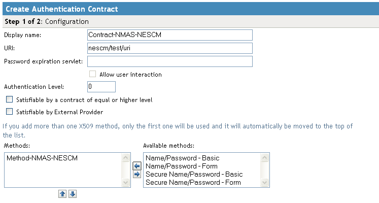 If the contract is not listed, make sure you have updated the changes to the servers, first to the Identity Server and then the Access Gateway. If you have multiple Identity Server configurations, make sure that the Access Gateway is assigned to the Identity Server configuration that contains the NESCM contract (click > > ).