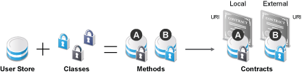 Contracts: The basic unit of authentication. Contracts can be local (executed at the server) or external (satisfied by another Identity Server). Contracts are identified by a unique URI that can be used by Access Gateways and agents to protect resources. Contracts are comprised of one or more authentication methods used to uniquely identify a user. You can associate multiple methods with one contract. See Section 3.4, Configuring Authentication Contracts.