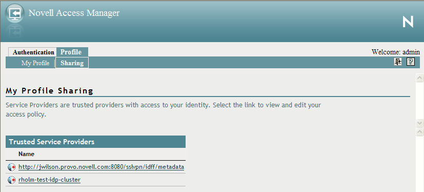 If you have configured the Identity Server to be an identity provider for service providers, a Federation page is accessible after login. From this page, users can federate and defederate their accounts with trusted service providers.