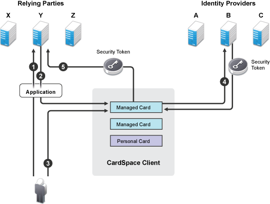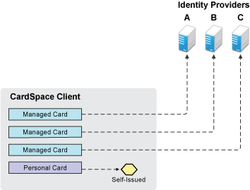 Managed cards come from an identity provider. When the users interact with the Identity Server, they can install a managed card from the Identity Server into the CardSpace client. The managed card provides metadata to CardSpace about how to interact with the Identity Server, which includes the available attributes (claims).