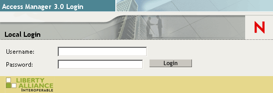 Figure 2-2 displays the default login page provided by Access Manager. Multiple JSPs are used to create the page.