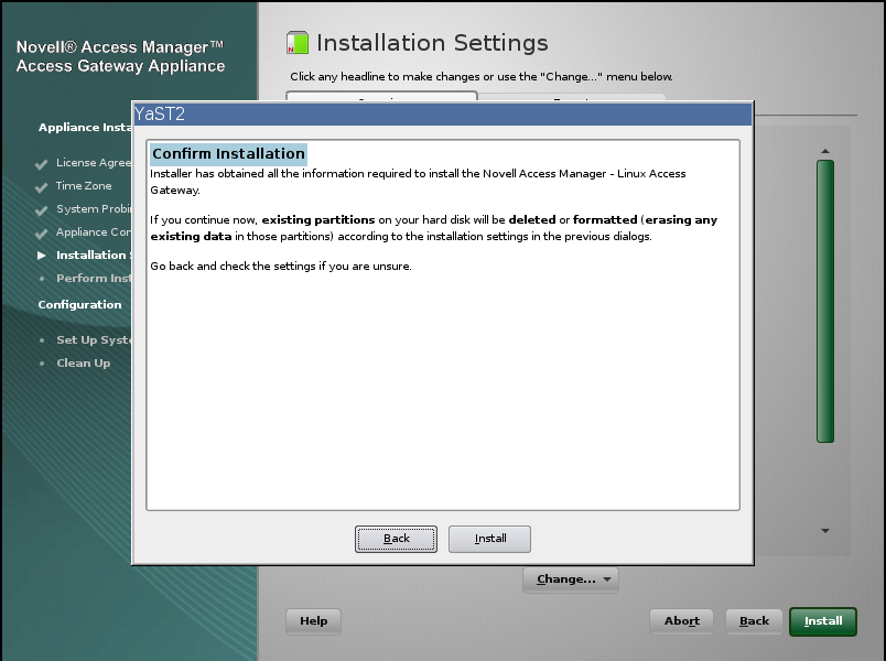 (Optional) To verify the installation of the Linux Access Gateway Appliance, log in to the Administration Console (see Section 4.3, Logging In to the Administration Console), then click > .