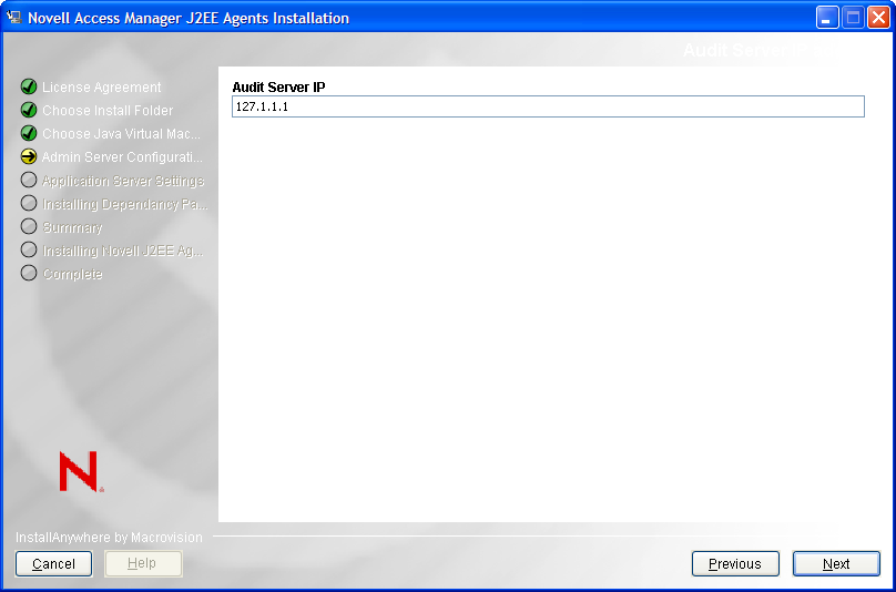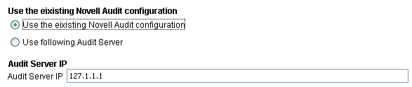 (Conditional) If you do not have the audit server installed, the J2EE installer installs the Audit server for you. Specify the IP address of the Novell Access Manager Administration Console as the .