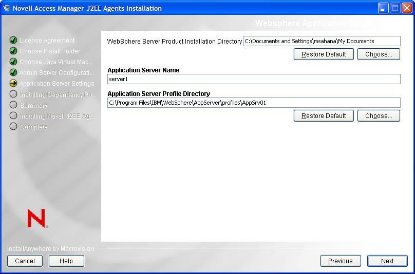 Specify an absolute path to install the Novell J2EE agent components, or press Enter to continue with the default installation path.