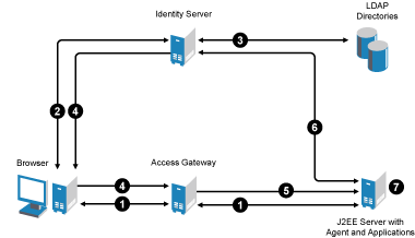You can configure your J2EE server so that users have direct access to it or so that it is a protected resource of the Access Gateway. Both configurations use the Identity Server for authentication.