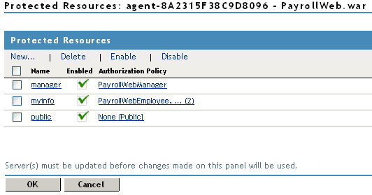 To allow the J2EE Agent to enforce authorization for the payroll Web module, you need to create three protected resources for the payroll application.