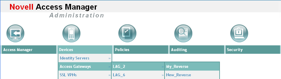 Access Manager has two views in the Administration Console. Access Manager 3.0 and its Support Packs used the view, with Access Manager as the first listed task in the left hand navigation frame. It looks similar to the following:
