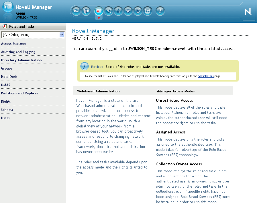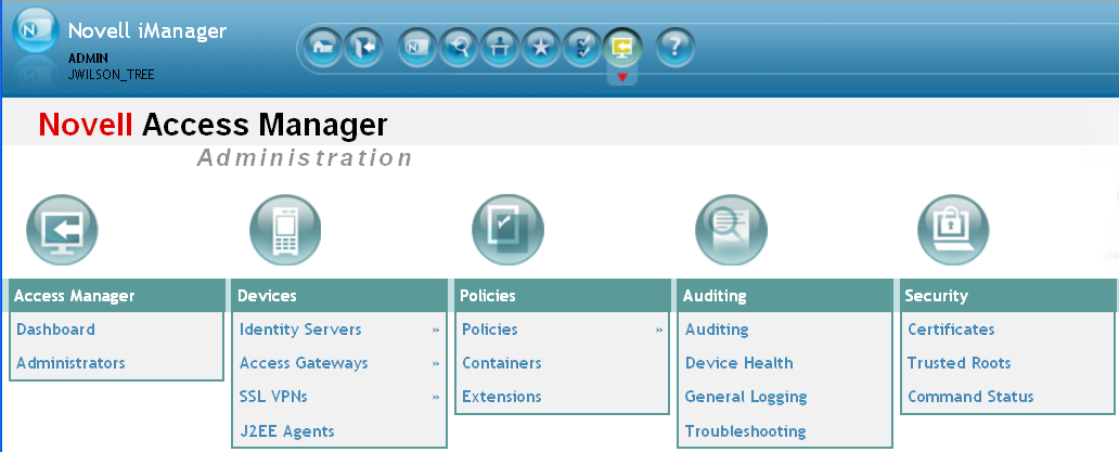 The Administration Console uses a modified version of iManager. You cannot use standard iManager features or plug-ins with the Access Manager version of the product.