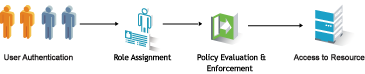 As shown in Figure 2-2, during user authentication, the system checks the existing Role policy to determine which roles that a user must be assigned to. After authentication, assigned roles can be used as evaluated conditions of an Authorization policy.