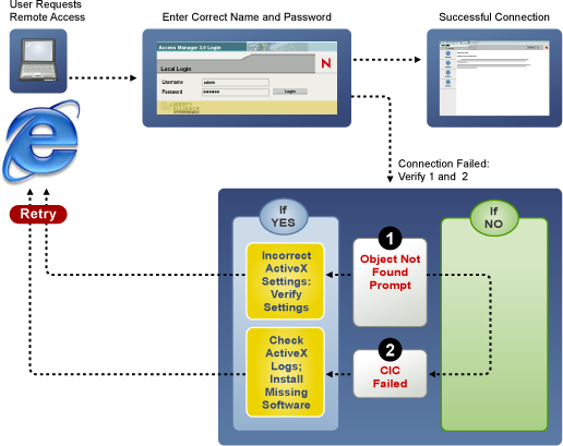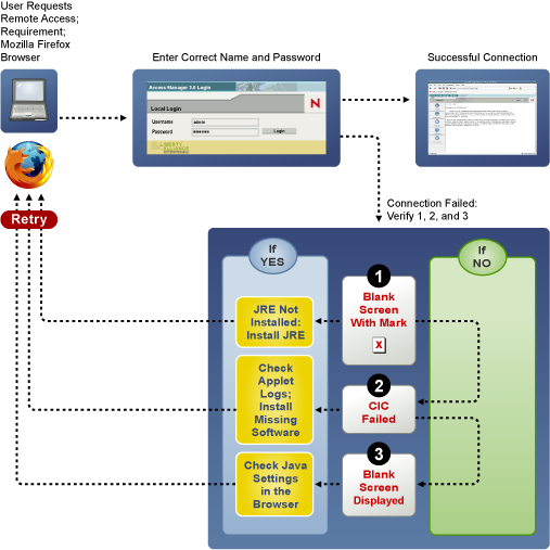 You can access the protected resources that are using SSL VPN by authenticating to the proxy server. The proxy server loads the SSL VPN client on your browser. The following sections describe some of the problems that clients might encounter: