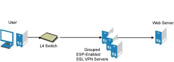 To configure a cluster of ESP-enabled SSL VPNs behind an L4: