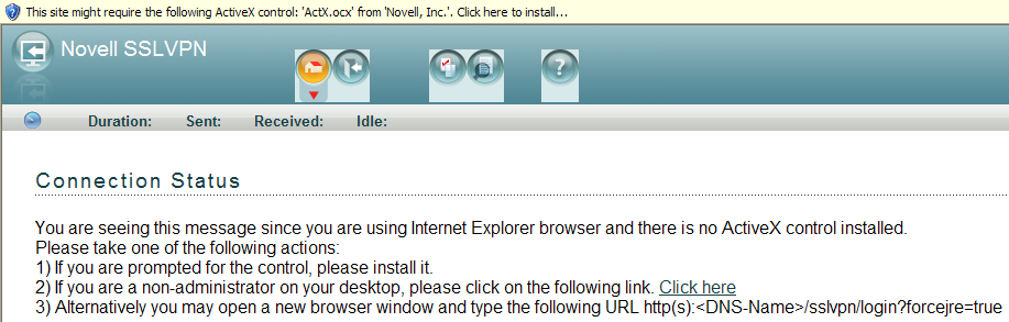 (Conditional) If you are using the Internet Explorer browser and the ActiveX control is not installed, click the toolbar of the following screen to download the ActiveX control:
