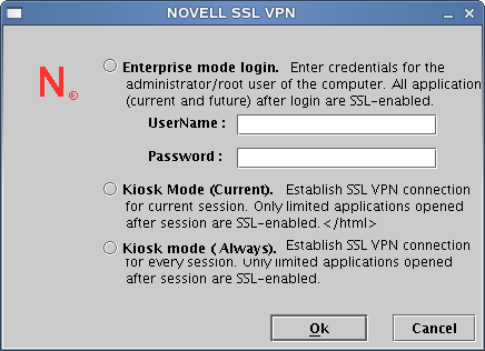 If you click in the dialog box to enable Enterprise mode of SSL VPN and you later want to switch to the Kiosk mode on the same machine, see Section 3.4, Switching from Enterprise Mode to Kiosk Mode
