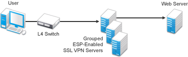 Figure 6-1 Cluster of SSL VPNs behind an L4 switch,