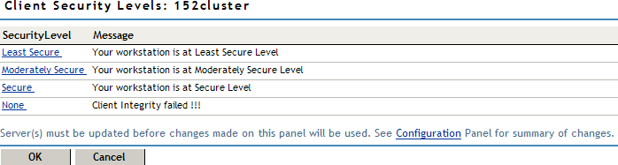 You can configure the following security levels: