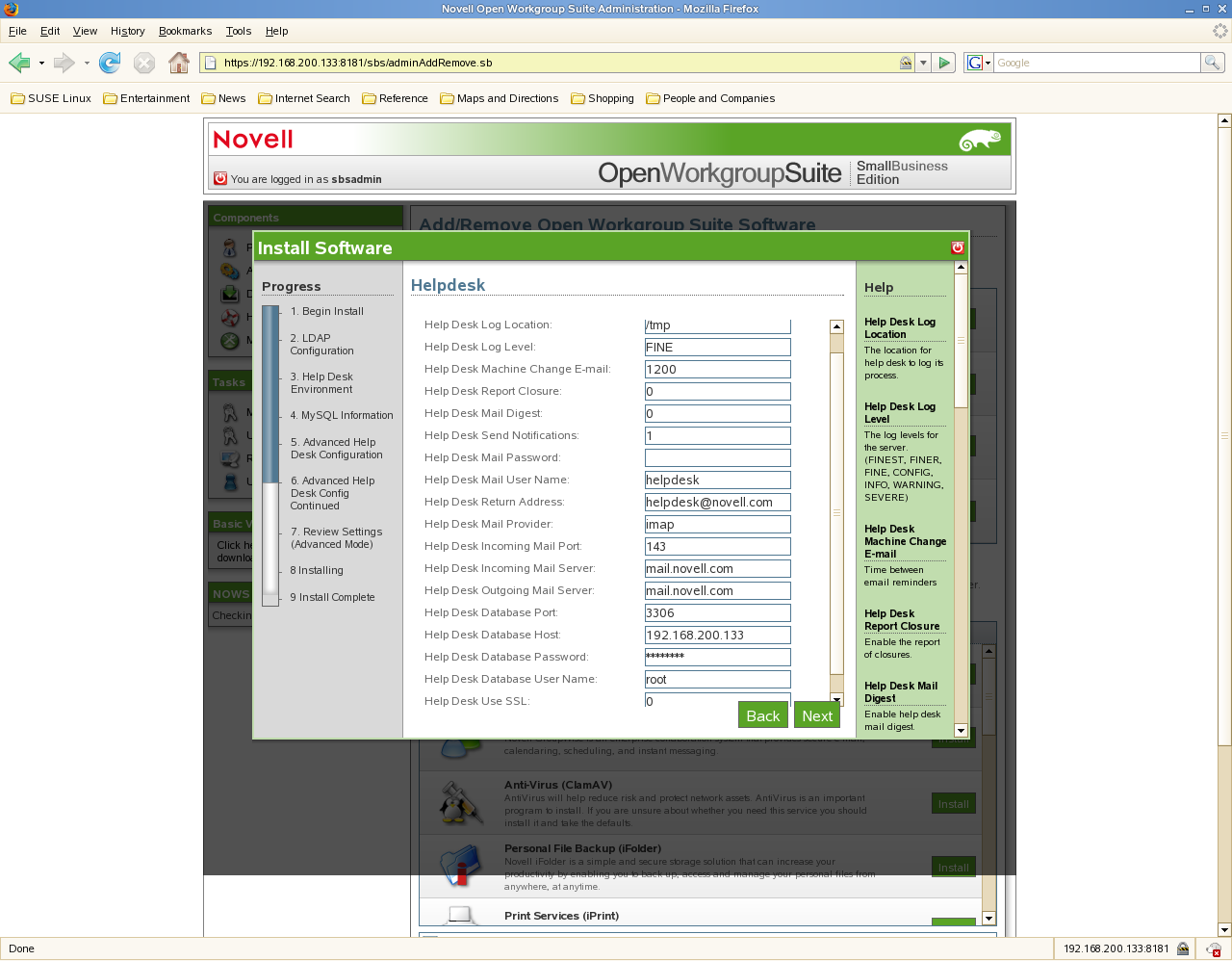 The Helpdesk Advanced installation is now complete. Click to proceed to the available software page. Helpdesk is now listed on the installed software list and can be launched from the Helpdesk administration link.