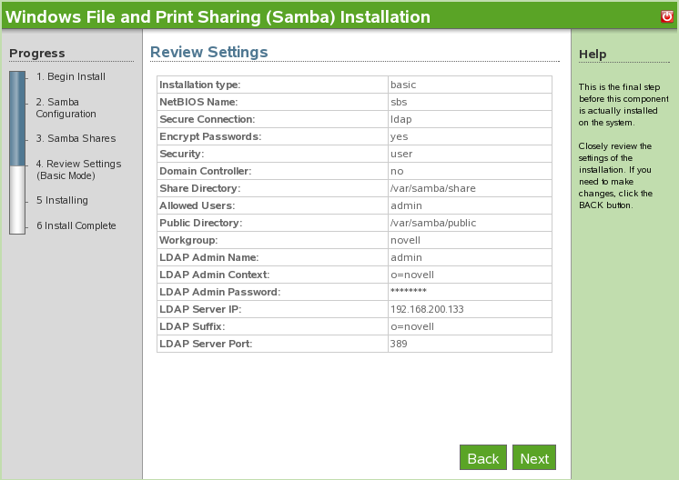 LDAP Suffix: Specify the base LDAP suffix. This is where the samba Domain object is stored.