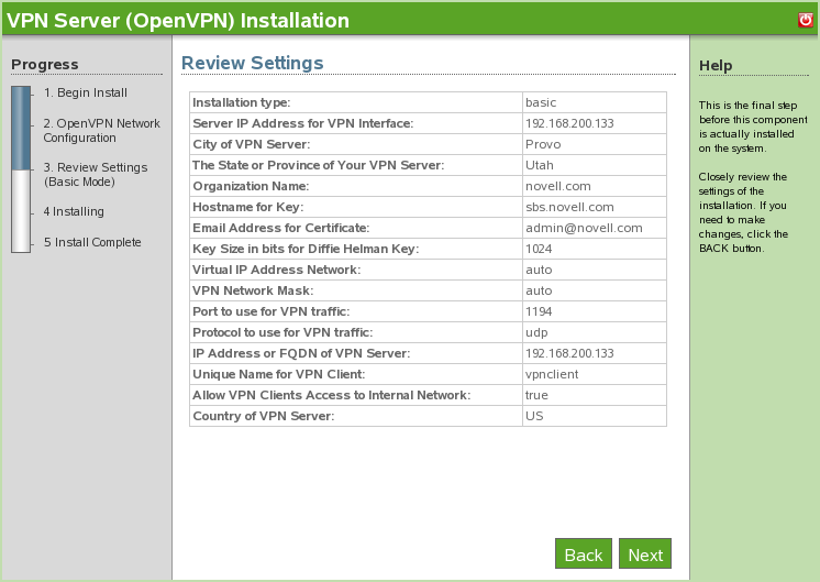 The OpenVPN installation is now complete. Click to proceed to the available software page. OpenVPN is now listed on the installed software list.