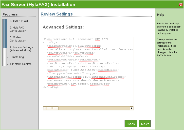 The HylaFAX installation is now complete. Click to proceed to the available software page. HylaFAX is now listed on the installed software list and can be launched from the administration link.