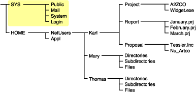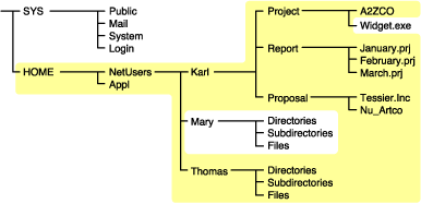The same principle applies when you specify a directory with the option. The figure below shows that all directories, subdirectories, and files under the NetUsers directory are included in the backup. All other areas of the file system structure are excluded from the backup.