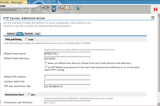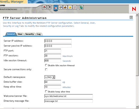 NOTE:The FTP Server iManager snap-in does not work in the Novell Remote Manager browser.