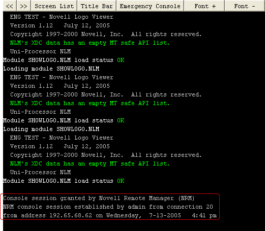 In order to be confident about who is accessing the console, the following information is logged on the Logger screen when the console screens are accessed using this method: