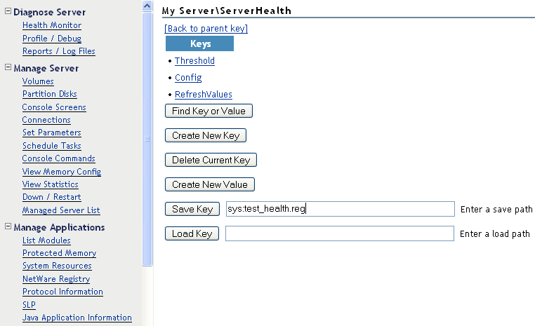 If you are instructed by a Novell support provider to edit the registry keys or values, unload portal.nlm and reload it with the /regedit switch. You can then traverse the registry to the key or value that you want to change and edit the registry using the applicable links on this page, or you can export (save) the keys or values to a file, make your changes, then import (load) the keys. For more information, see Export registry key (save key). and Import registry keys (load key)..