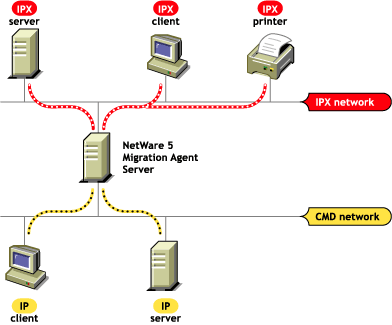 Figure 2-1 Migration Agent Interconnecting IP and IPX Nodes