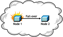 When there is a node (node1) outage, clustering enables a DNS server to automatically bring up any other node (node2) using the same server object that was used before the outage. The DNS server object contains a reference to the virtual NCP server, which is used to locate the DNS server object. For more information, see Section 7.2, Cluster Support.