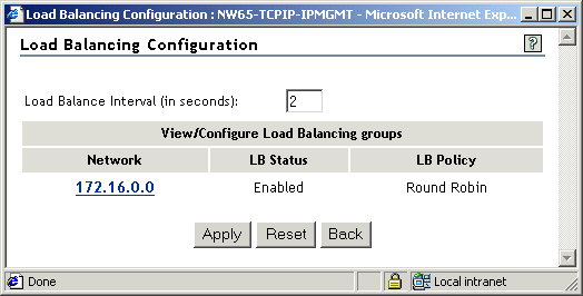 In Configure Individual Groups, select the network listed and enable load balancing.