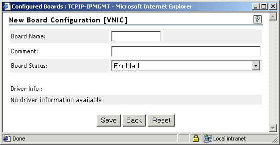 Log in to Novell Remote Manager, then click Configure TCPIP > Start TCP/IP Configuration > Configure Boards > Add.
