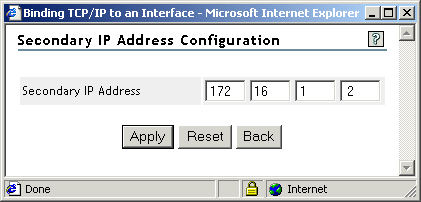 In the Secondary IP Address Configuration window, type a secondary IP address.