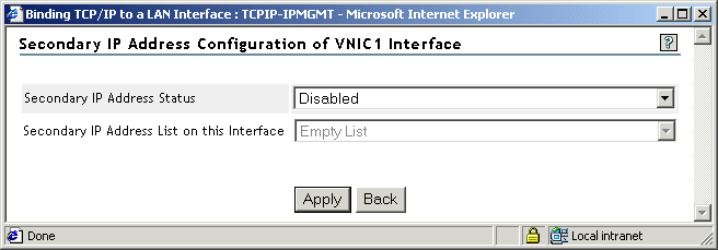 Figure 5-19 Secondary IP Address Configuration of VNIC Interface Window