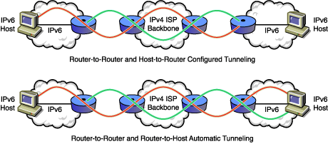 Tunneling requires only edge ingress and egress router upgrades until native IPv6 networks are commercially deployed or offered end-to-end. Two tunneling mechanisms are explained here: