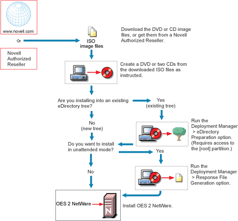 The software and network preparation processes required to install OES 2 NetWare are outlined in Figure 3-2. Specific instructions for the steps shown are referenced in the sections that follow.