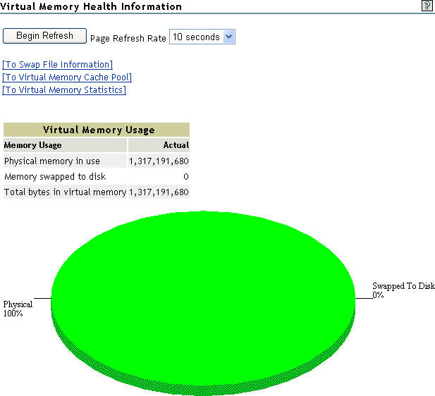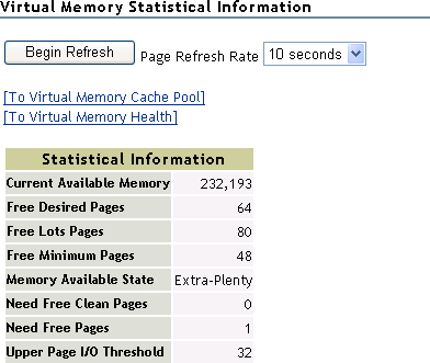 The Virtual Memory Health Information page also contains links to additional pages that can help you understand and manage the virtual memory system in the server: